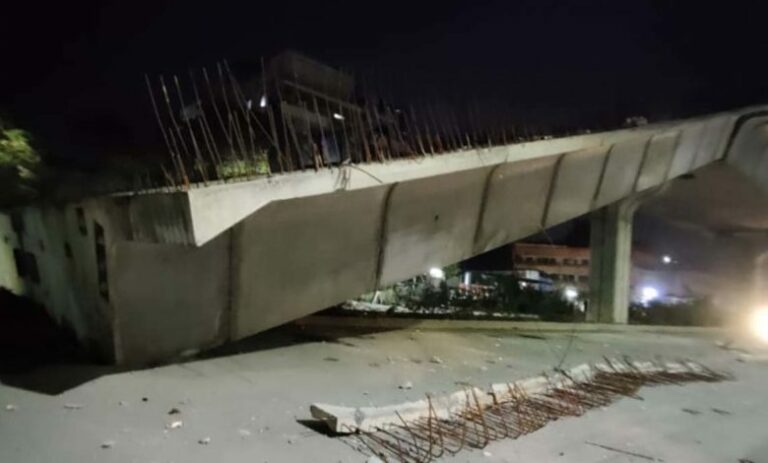 धक्कादायक ! निर्माणाधीन उड्डाणपुलाचा भाग कोसळला, अख्ख कुटूंब थोडक्यात बचावलं!