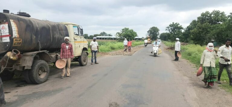 खड्ड्यात वृक्षारोपण करत केला सार्वजनिक बांधकाम विभागाचा निषेध