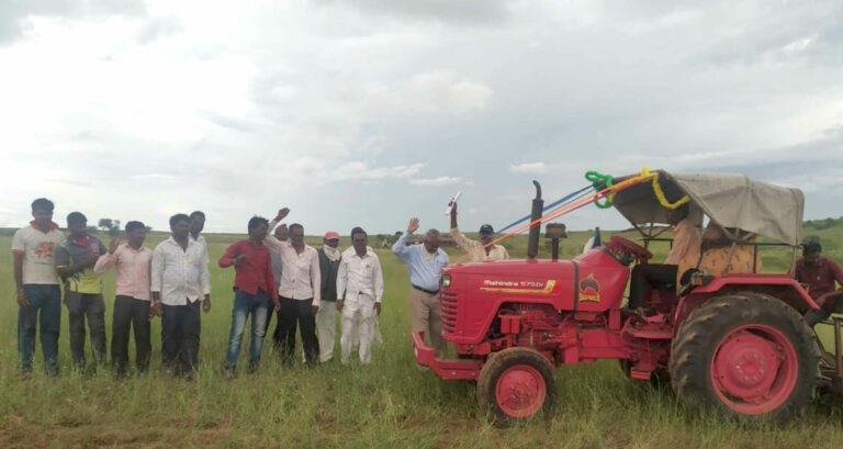 ट्रॅक्टरने नांगर फिरवून आदिवासी बांधवांनी आपला ताबा व जमीनीचा हक्क केला सिध्द