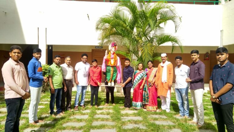विद्यार्थ्यांनी बनवली प्लास्टिक ड्रम व पीव्हीसी पाईपपासून साडे पाच फूट गणेशमूर्ती