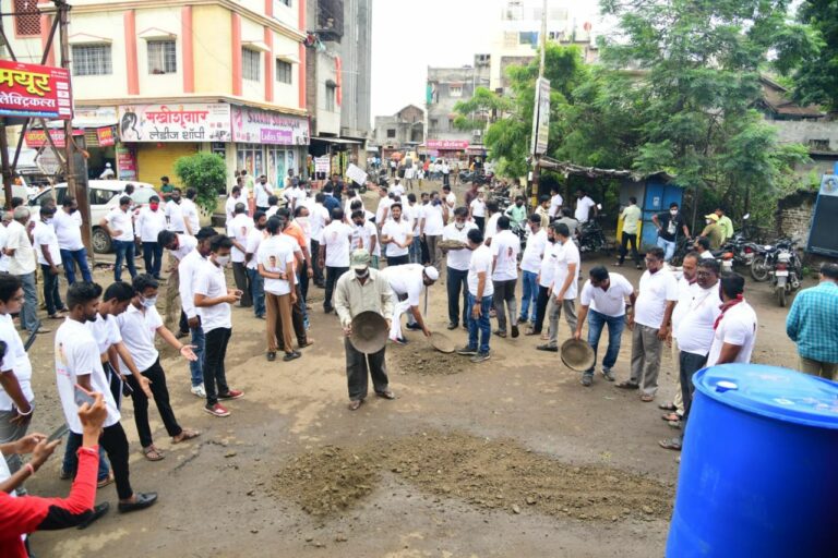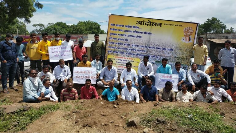 तरूणांनी घेतले खड्ड्यात बुजवुन,  नगर-मनमाड रस्ता दुरुस्तीसाठी अनोखे आंदोलन