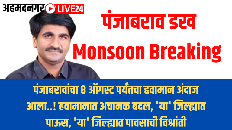 Monsoon Update: पंजाबरावांचा 8 ऑगस्ट पर्यंतचा हवामान अंदाज आला..! हवामानात अचानक बदल, ‘या’ जिल्ह्यात पाऊस, ‘या’ जिल्ह्यात पावसाची विश्रांती