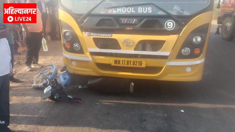अहिल्यानगरमध्ये भरधाव स्कुलबसचा अपघात ; एक ठार