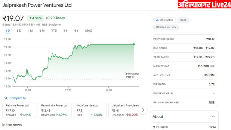 JP Power Share Price: JP पॉवर शेअर आज रॉकेट! 3 महिन्यात गुंतवणूकदार झालेत मालामाल.. तुमच्याकडे आहे का?