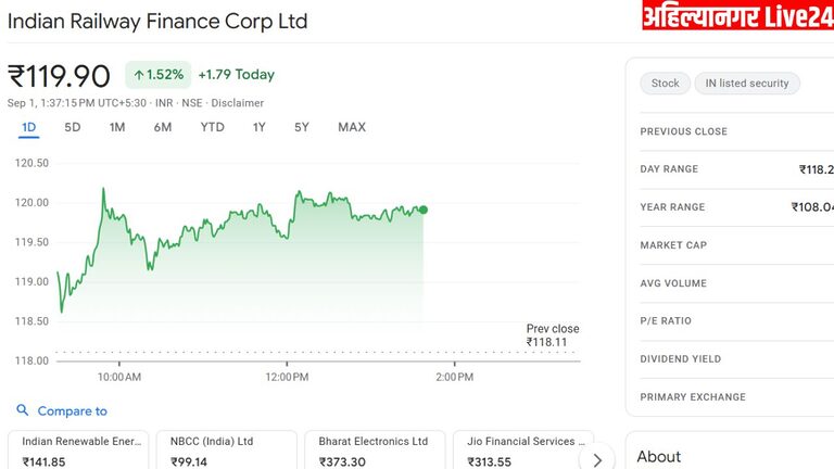 IRFC Share Price: 3 महिन्यात 13.72% घसरण! रेल्वेचा ‘हा’ शेअर आज मात्र वधारला….बघा अपडेटेड टार्गेट प्राईस