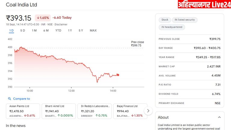 Coal India Share Price: कोल इंडियाच्या शेअर खरेदीसाठी आज झुंबड! आजची किंमत बघून चकित व्हाल…BUY कराल का?