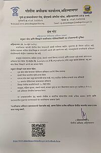 Ahilyanagar News : अहिल्यानगर- जिल्ह्यात पोलिस प्रशासनाला अधिक लोकाभिमुख आणि उत्तरदायी बनवण्यासाठी एक अभिनव उपक्रम हाती घेण्यात आला आहे. जिल्हा पोलिस अधीक्षक सोमनाथ घार्गे यांच्या पुढाकाराने नागरिकांना क्युआर कोड आणि ऑनलाइन लिंकद्वारे पोलिस सेवांबाबत अभिप्राय नोंदवण्याची संधी उपलब्ध करून देण्यात आली आहे. ही मोहीम 30 जून ते 9 जुलै 2025 या कालावधीत राबवली जात असून, नागरिकांनी वाहतूक व्यवस्थापन, महिला सुरक्षा, अंमली पदार्थविरोधी कारवाई आणि सायबर गुन्ह्यांबाबत आपली मते नोंदवावीत, असे आवाहन घार्गे यांनी केले आहे. या उपक्रमामुळे पोलिस आणि नागरिक यांच्यातील संवाद वाढण्यास मदत होईल आणि पोलिस सेवांची गुणवत्ता सुधारण्यास हातभार लागेल.