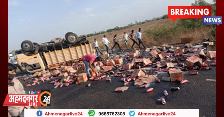 अहमदनगर ब्रेकिंग : बियरची वाहतूक करणाऱ्या टेम्पोचा अपघात, तळीरामांची चांदी झाली