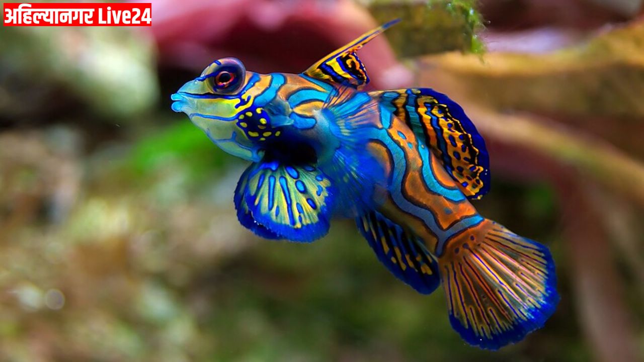पॅसिफिक महासागराच्या निळ्याशार खोल समुद्रात मेंडरिन मासा एका छोट्याशा चमत्कारासारखा दिसतो. निळसर, हिरवट आणि केशरी रंगांनी सजलेला हा मासा केवळ आकर्षक दिसत नाही, तर त्याचे रंग प्रकाशावर आधारित नसून प्रत्यक्ष रंगद्रव्यांमधून तयार होतात. म्हणूनच तो समुद्राच्या तळाशीही तितकाच भासतो जितका दिव्याखाली झळकतो. निसर्गाने त्याला केवळ रंगच नव्हे, तर एक वेगळं तेज दिलं आहे.